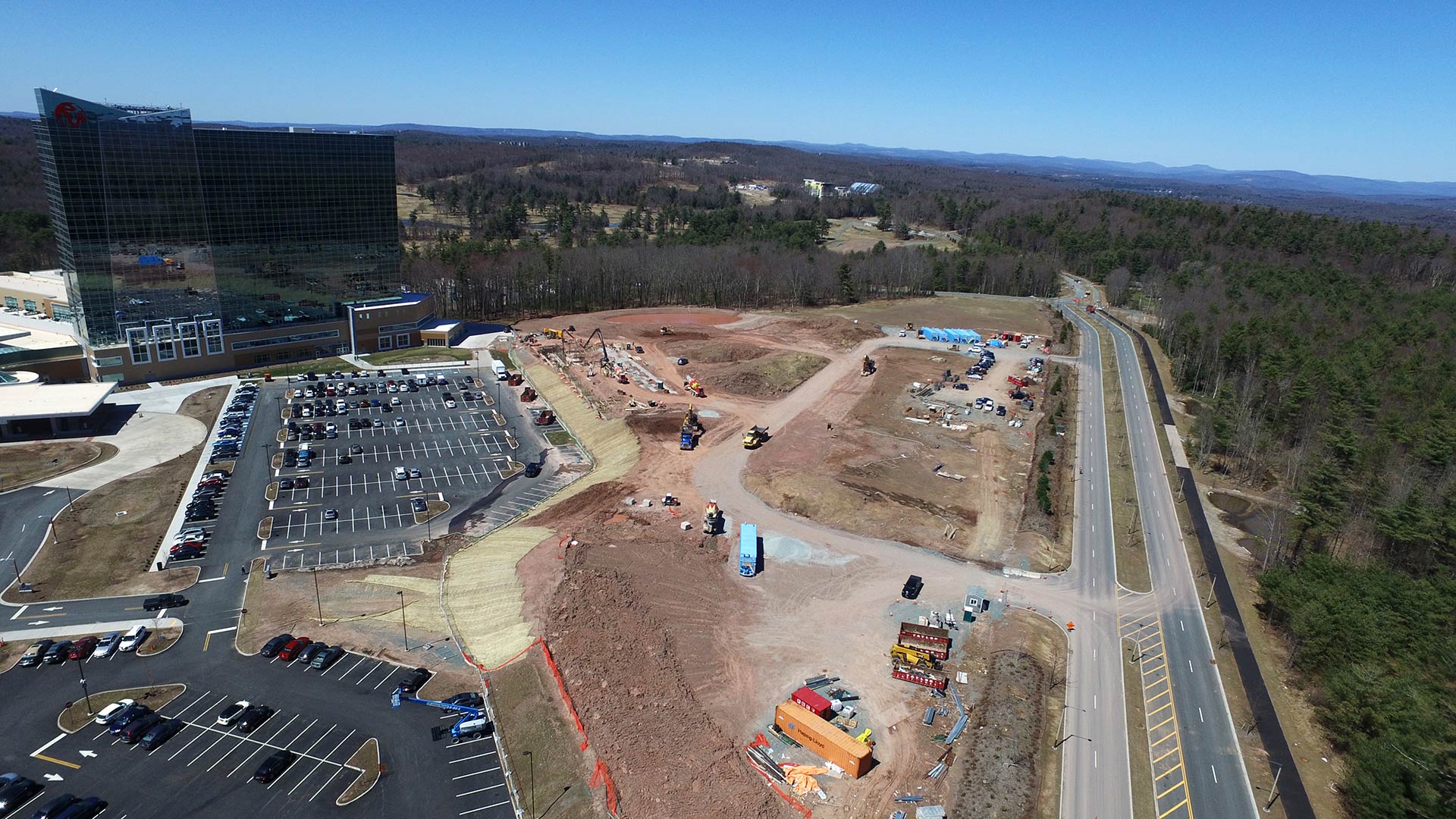 Development is underway of the Entertainment Village in Monticello, New York. The initial site preparation of grading, crushing and earthwork are ongoing with concrete formwork starting to take shape to build the foundation.
