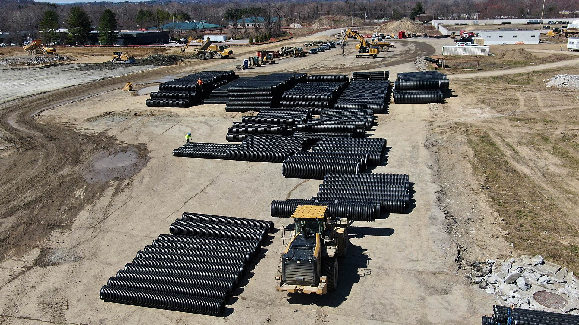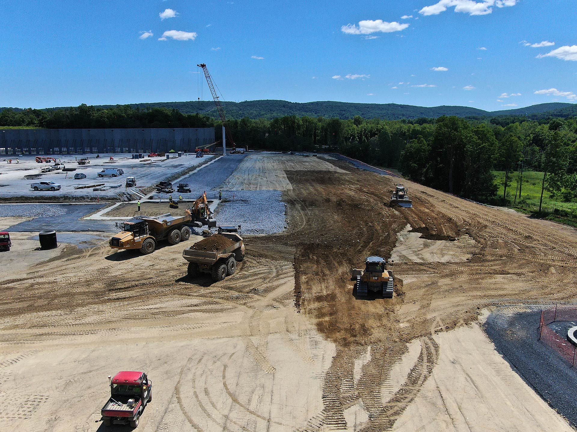 Earthmoving and staging are well underway at Project Redtail in East Fishkill, New York. Dirt work and earthmoving operations are in high gear. Petillo’s heavy construction team continues to excavate, grade, and level the worksite in preparation for the next phase of development.