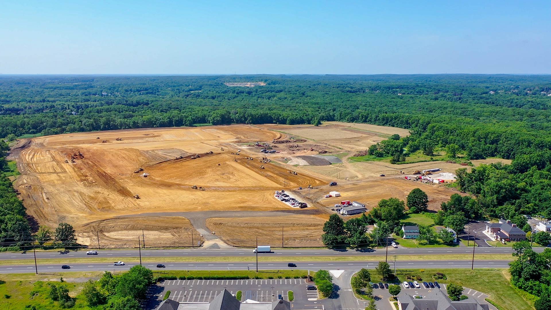 Construction is underway on the Millstone 8 Logistics Center. The 1.2 million square foot warehouse is being built at the former Showplace Farms horse training and rehabilitation facility on Route 33 in Millstone, New Jersey. The new logistics center is located about 7 miles from the New Jersey Turnpike’s Exit 8 interchange, providing easy access to metropolitan New York, Philadelphia, and South Jersey. Petillo’s heavy construction fleet has started developing the site and is currently excavating, clearing, grading, backfilling and preparing the site for the next stage of construction.